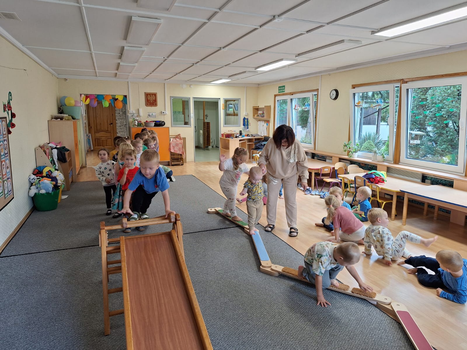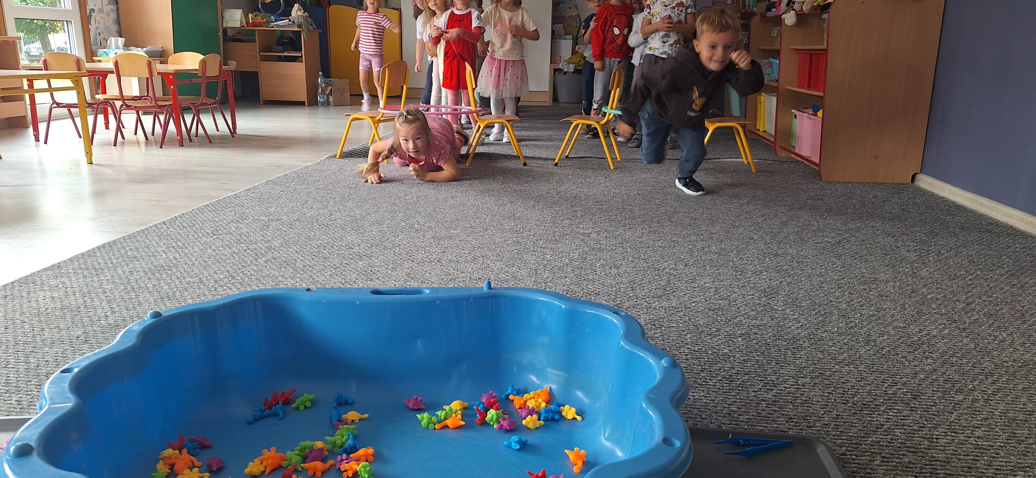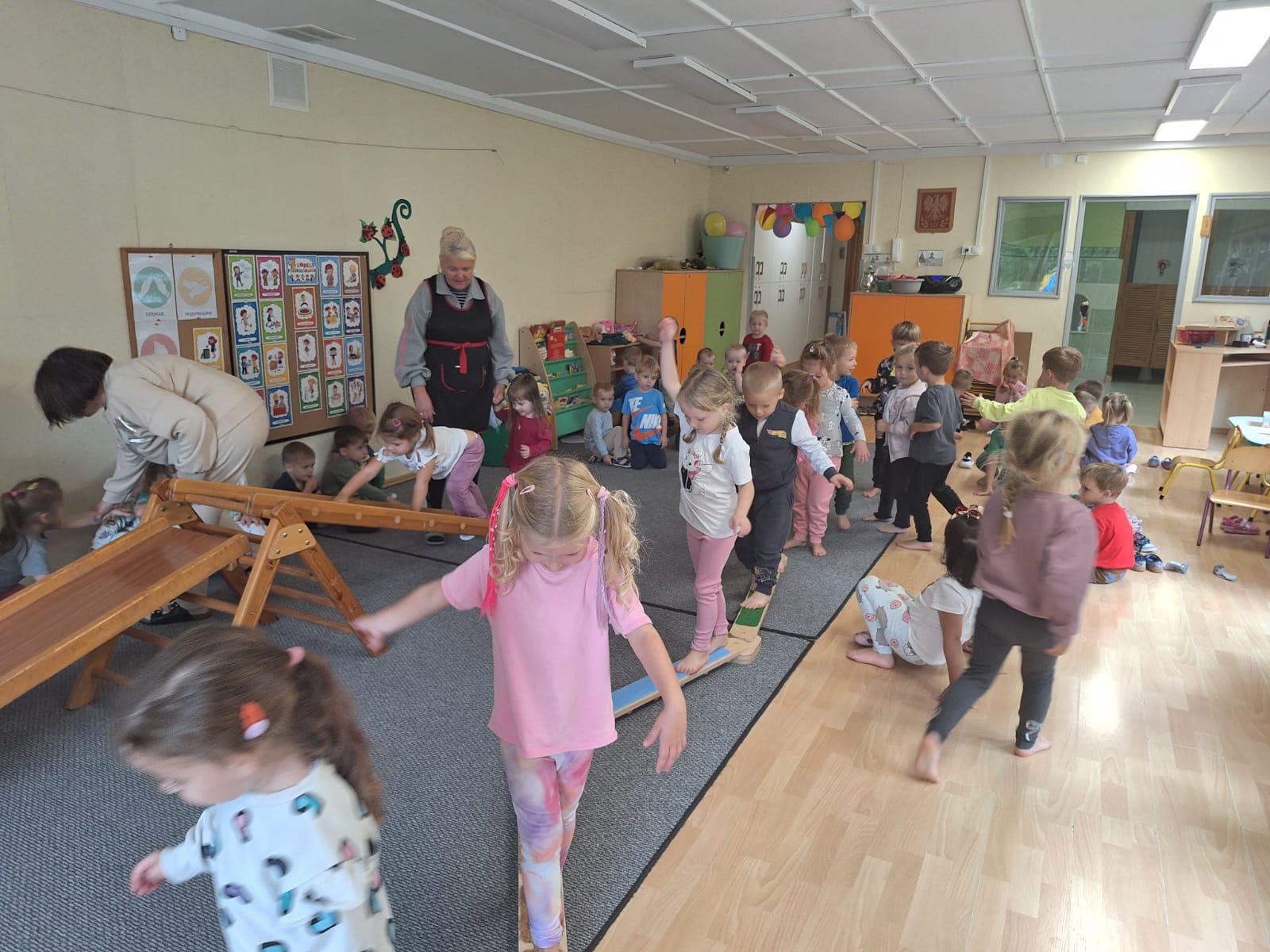 W naszym przedszkolu Dzień Przedszkolaka był pełen zabawy i ruchu! Poranek dzieci i rodziców rozpoczął się od sportowych wyzwań, które wesoło wprowadziły ich do przedszkola. Po wspólnej rozgrzewce przedszkolaki mogły spróbować swoich sił w różnych aktywnościach sportowych. Najwięcej emocji wzbudziła zmiana sali - każda nowa przestrzeń kryła nowe wyzwania ruchowe.
