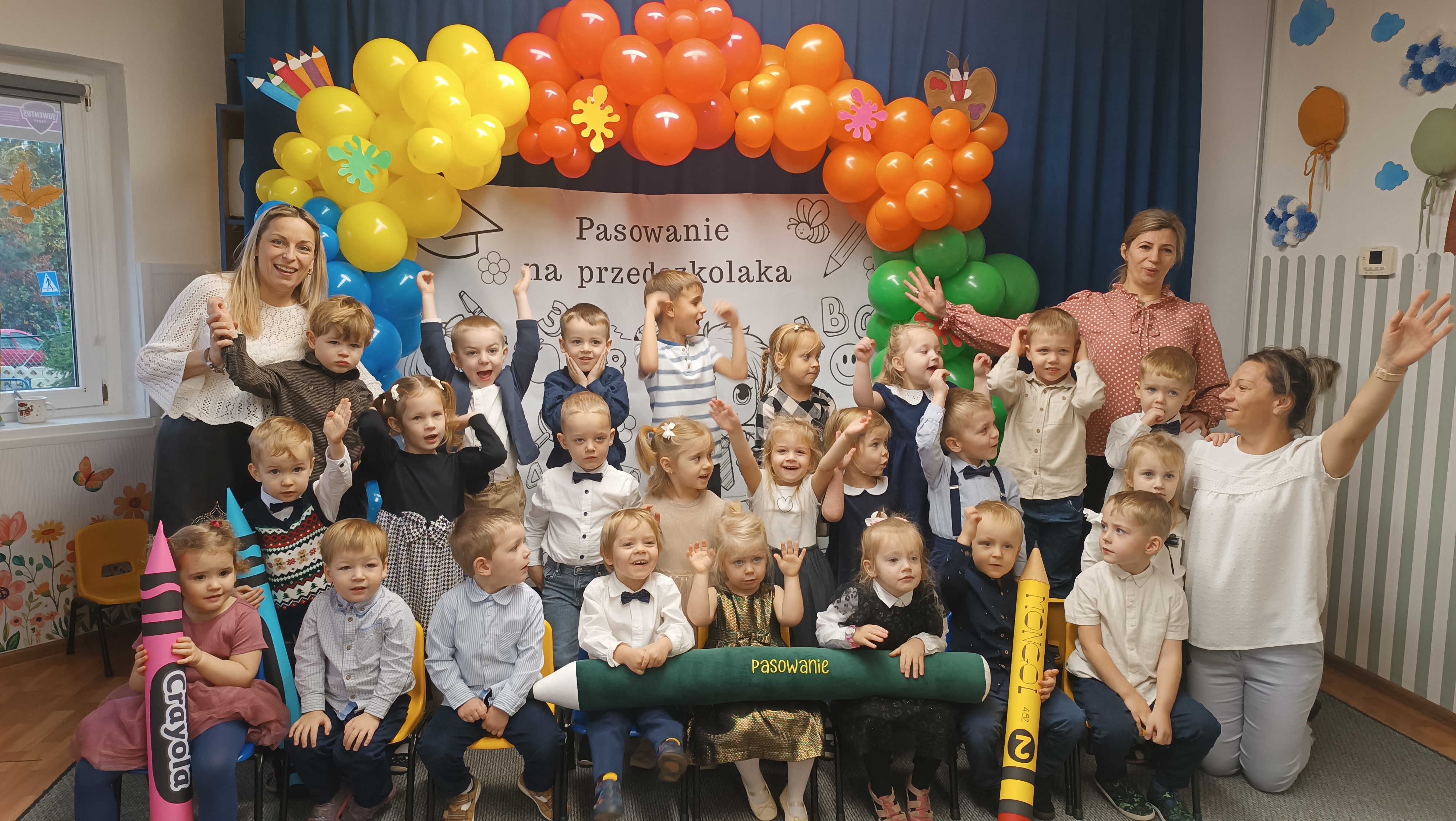 W dniu 20.11.2025 odbyło się Pasowanie na przedszkolaka najmłodszej grupy wiekowej w naszym Przedszkolu. Dzieci pięknie wystąpiły i pokazały swoje umiejętności a następnie zostały pasowane na przedszkolaka, oczywiście nie obyło się bez nagród.